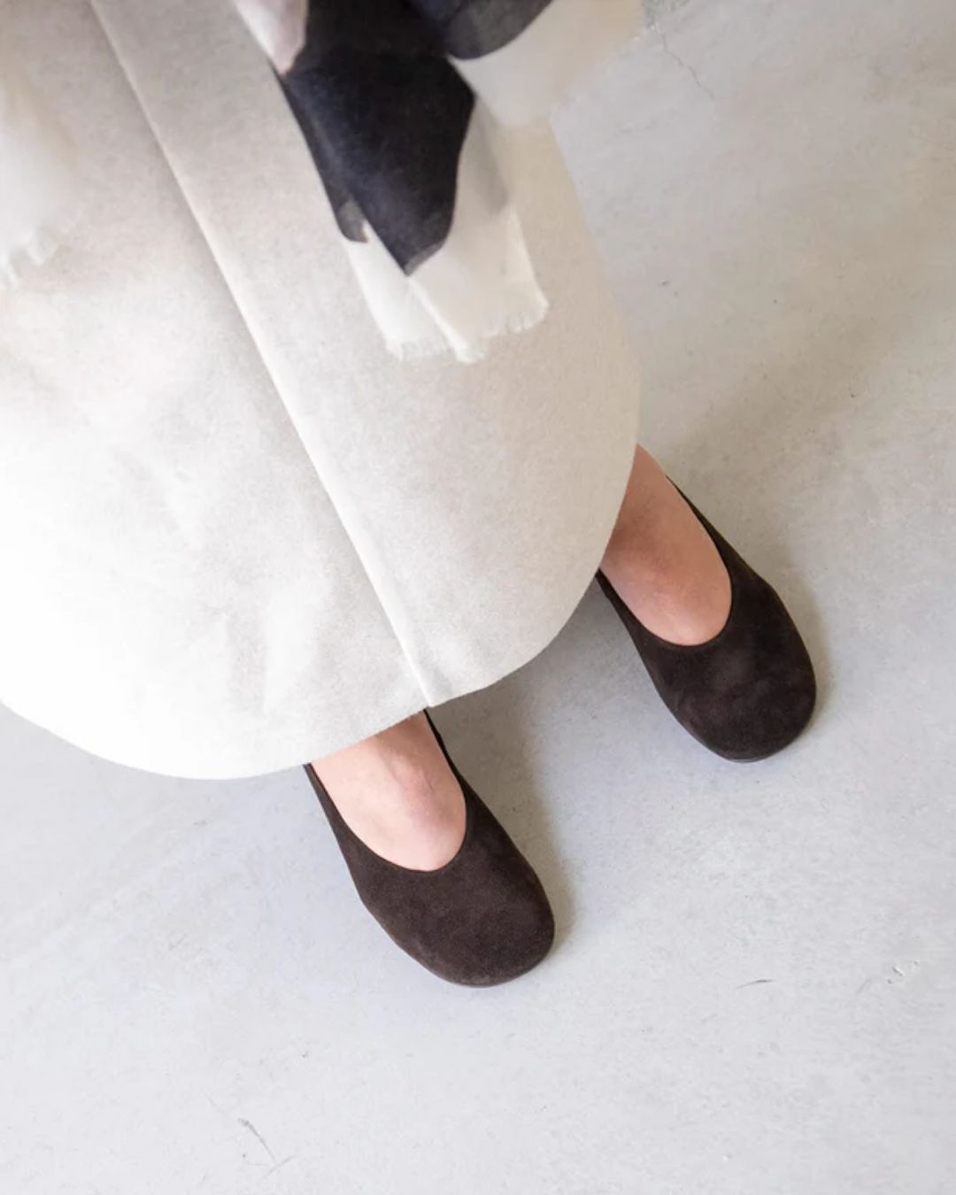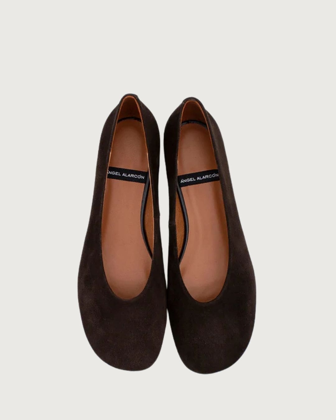 Bailarina de tacón plano de mujer con puntera redonda de Serraje