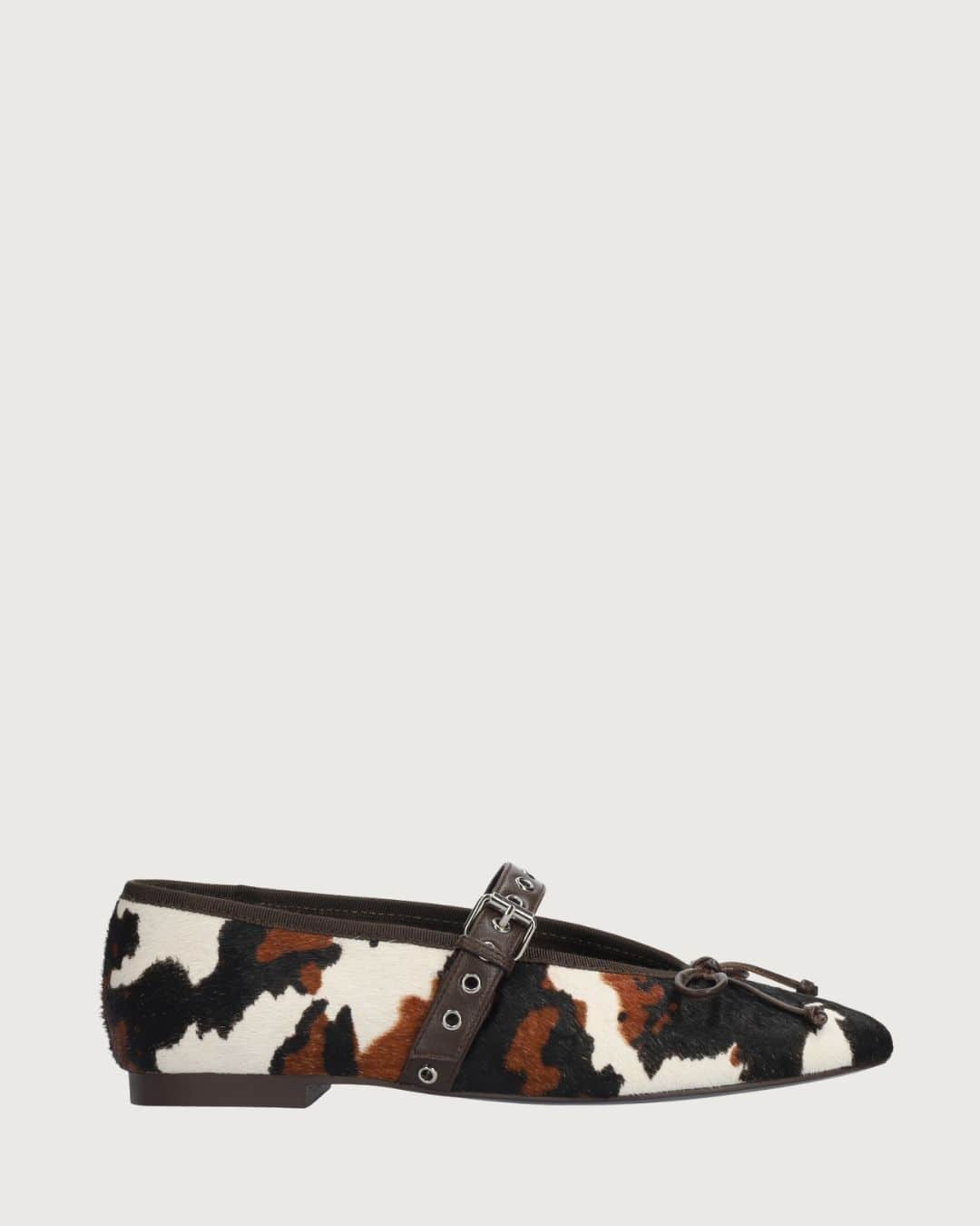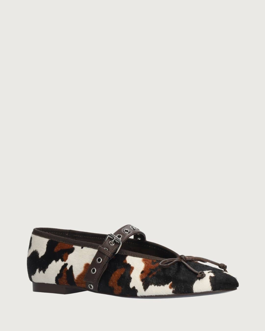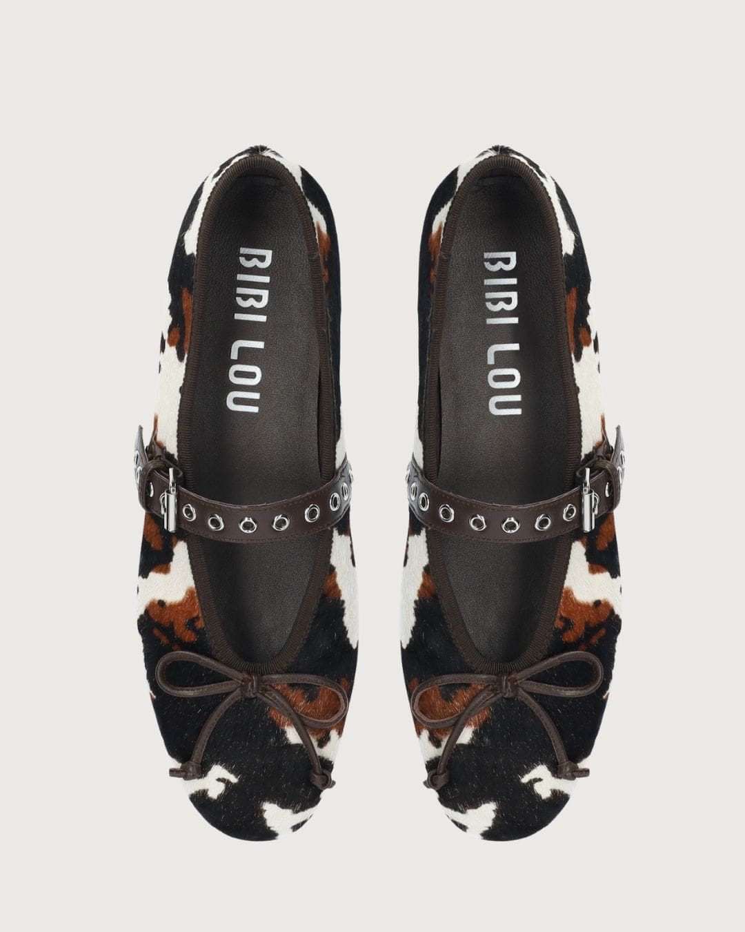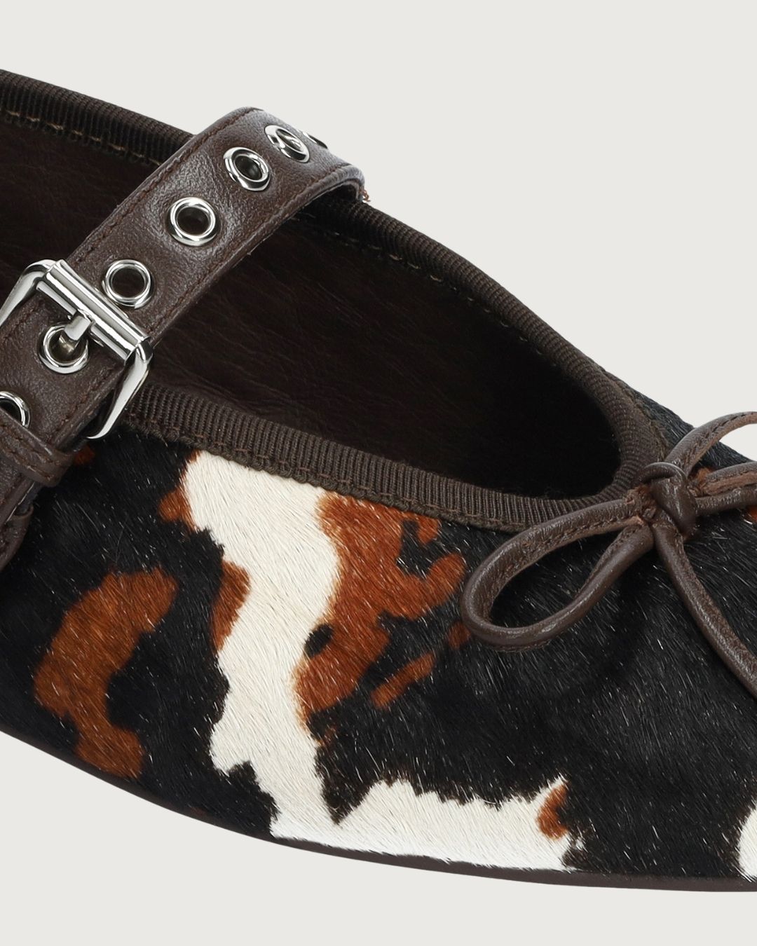 Bailarina fabricada en piel con punta redonda y tira de tachas en el empeine