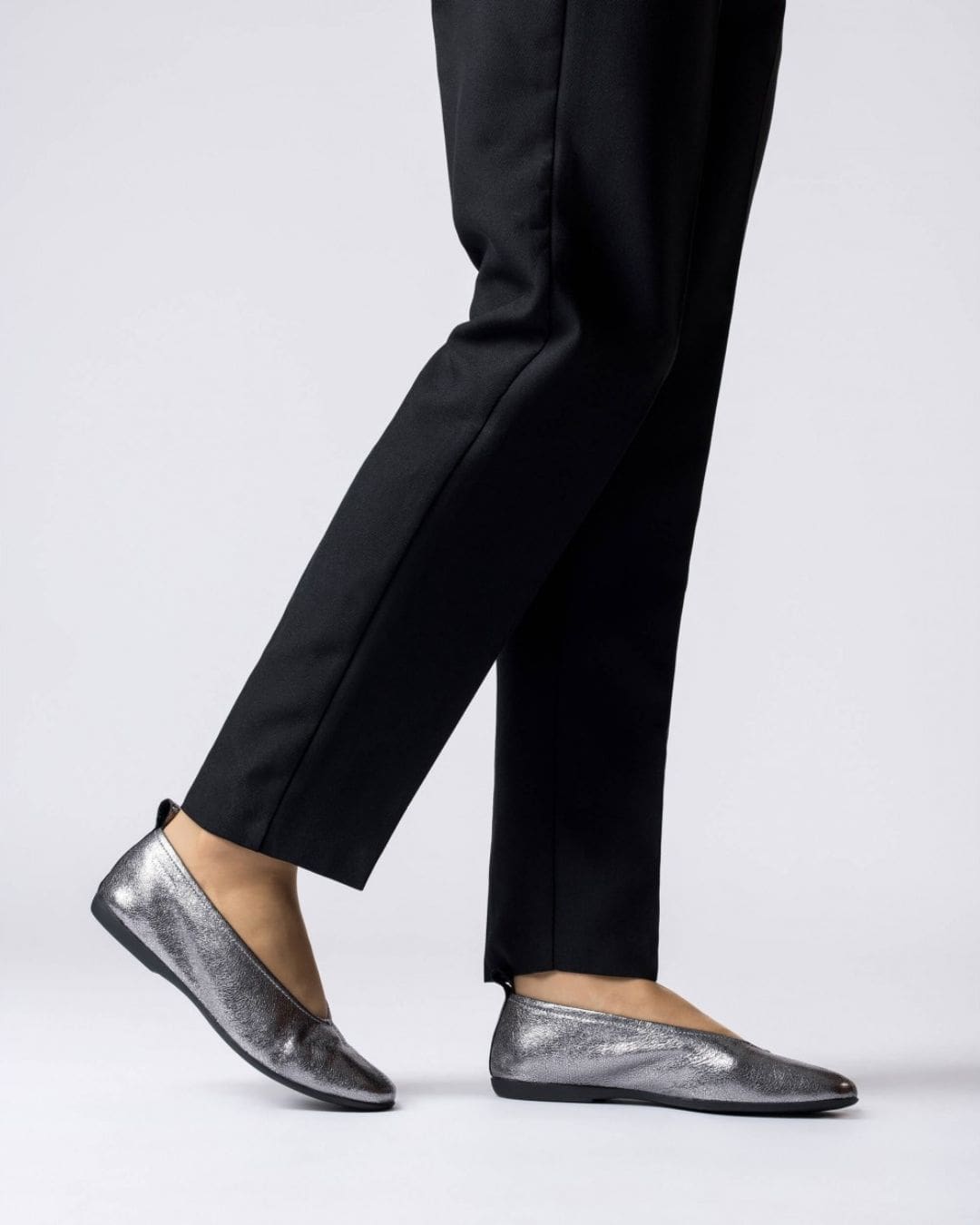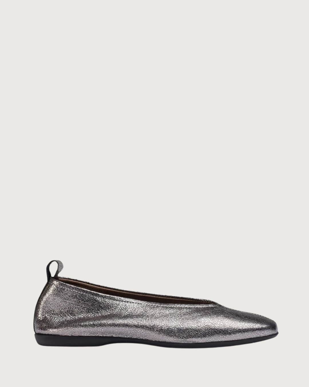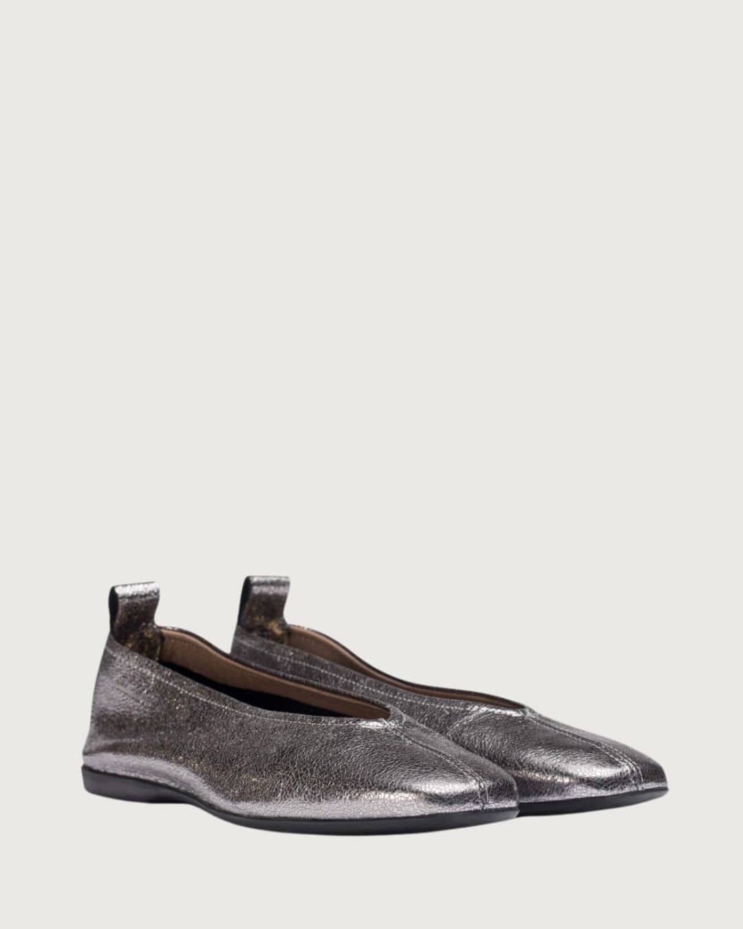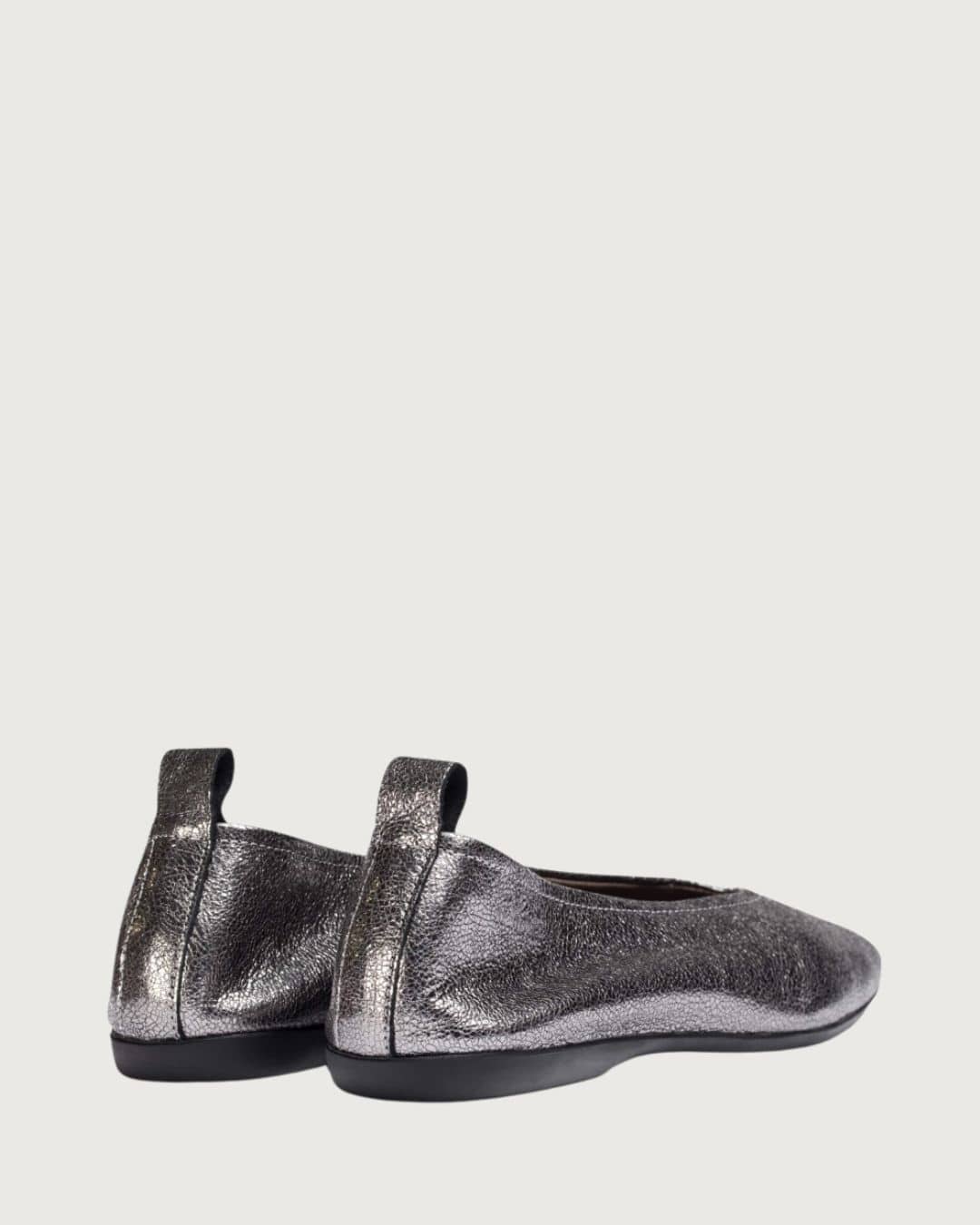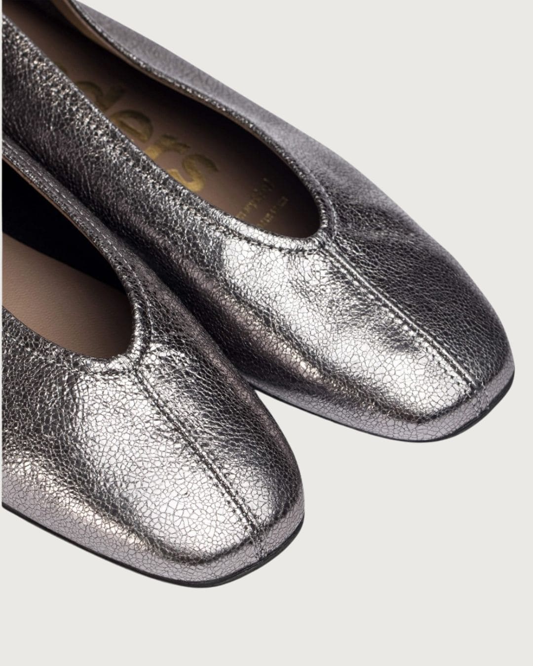 Bailarinas planas PEPA 61 fabricadas en piel metalizada color plomo. Este modelo casual presenta un corte redondo que se adapta cómodamente a tus pies, además de un detalle de doble pespunte y un práctico tirador trasero para un mejor calce. Para asegurar el máximo confort, incluye una plantilla interna de MemoryGel que amortigua la pisada en cada paso. Los colores pueden sufrir modificaciones por las luces de las fotos y las pantallas