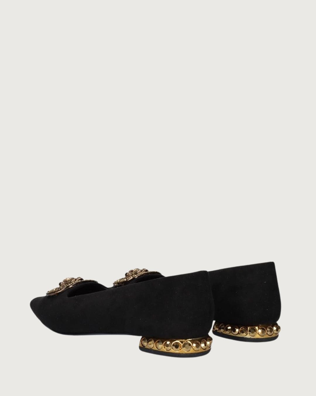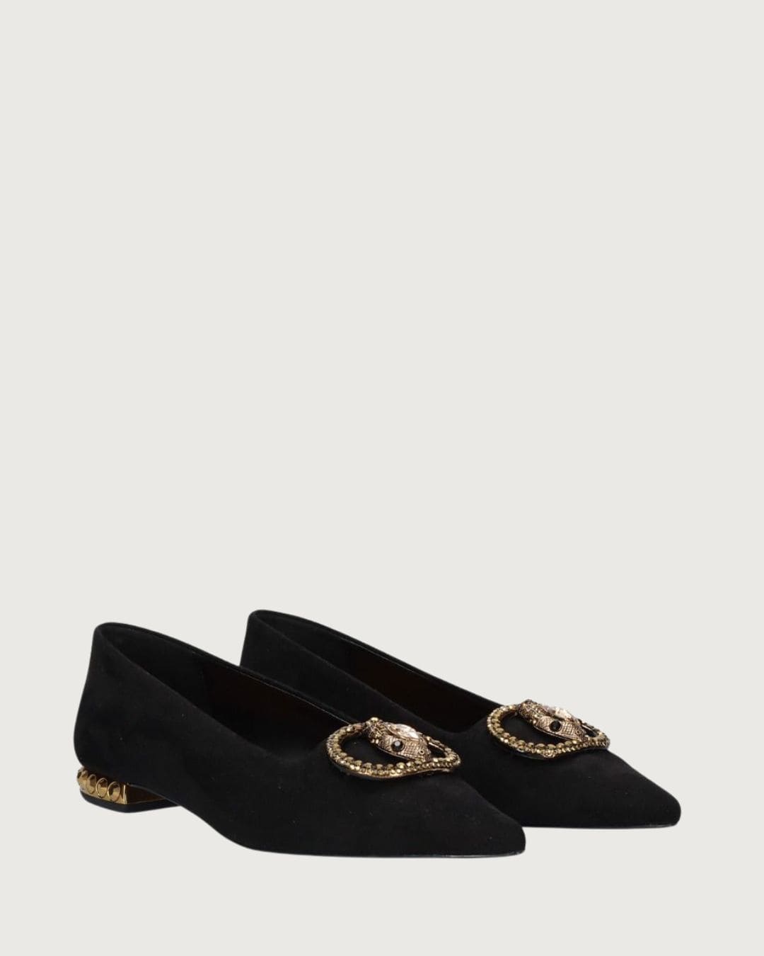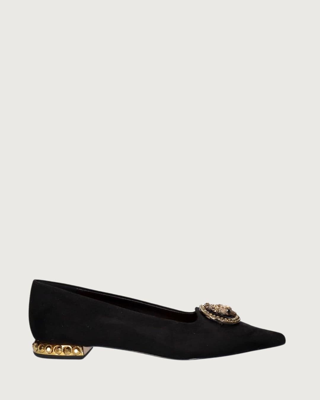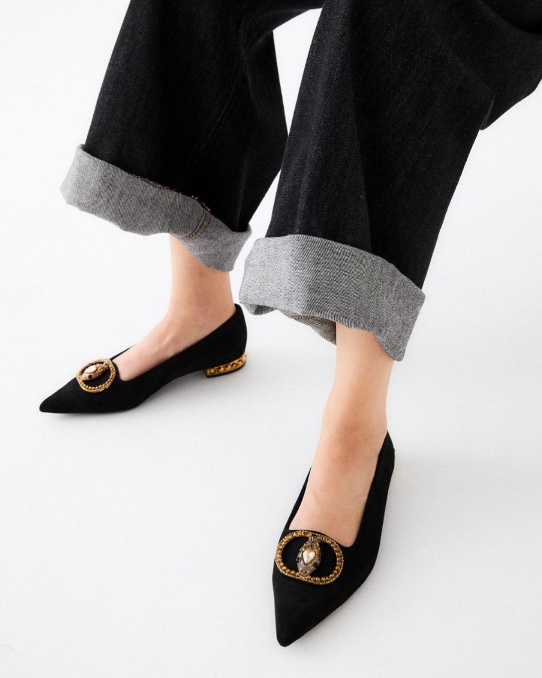 Dale un toque de sofisticación a tu día a día con estas bailarinas negras de punta fina. Diseñadas para aportar un toque refinado sin renunciar a la comodidad, este modelo destaca por su silueta estilizada y su detalle dorado en el empeine, que aporta luz y distinción a cualquier look. Son un must que no puedes dejar escapar.