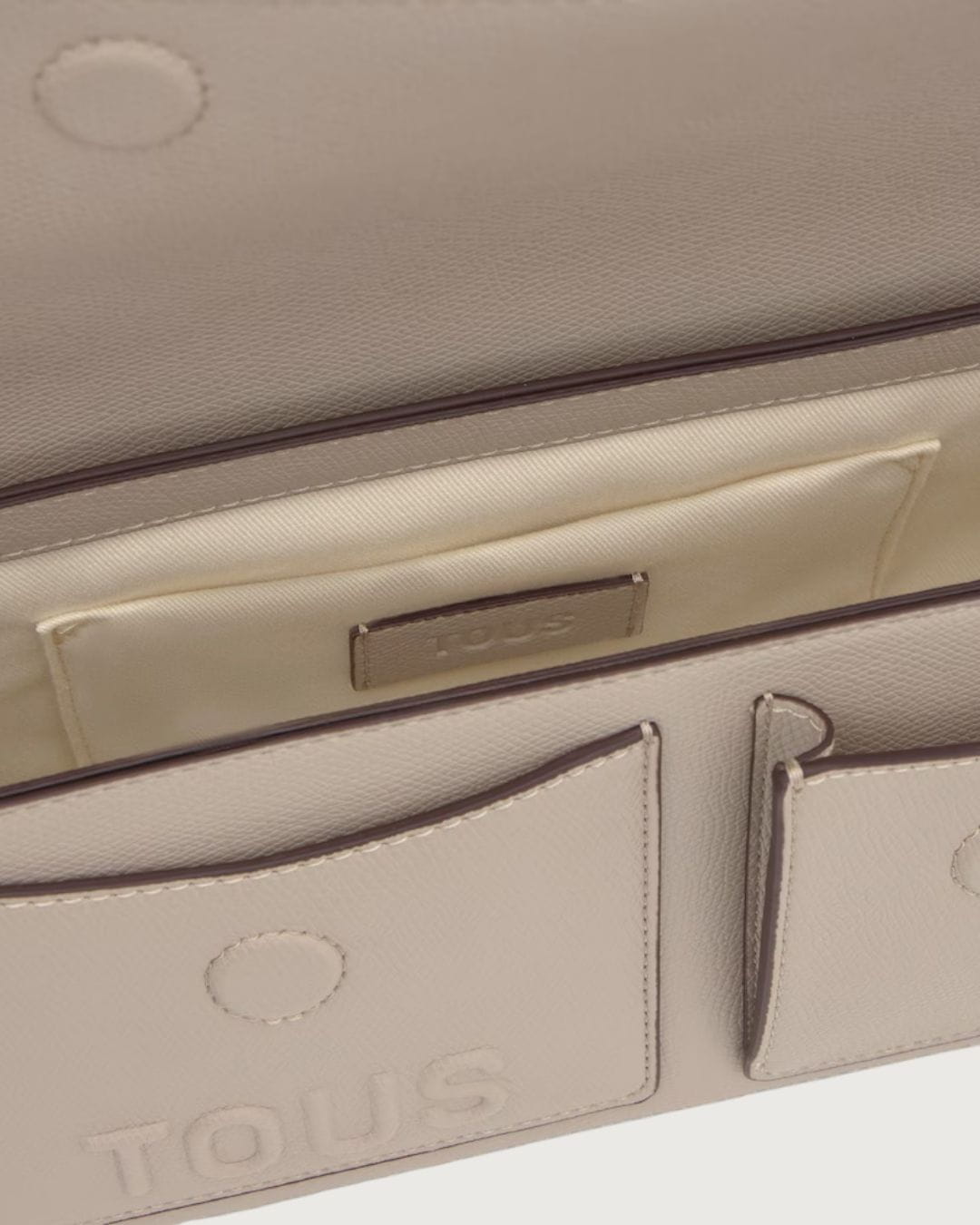 Bolso bandolera mediano TOUS Back to basics de poliuretano. Cierre de solapa con botón magnético. Bolsillo interior abierto. Dos bolsillos exteriores abiertos. Asa bandolera ajustable. Medidas: 14 x 29 x 9 cm
