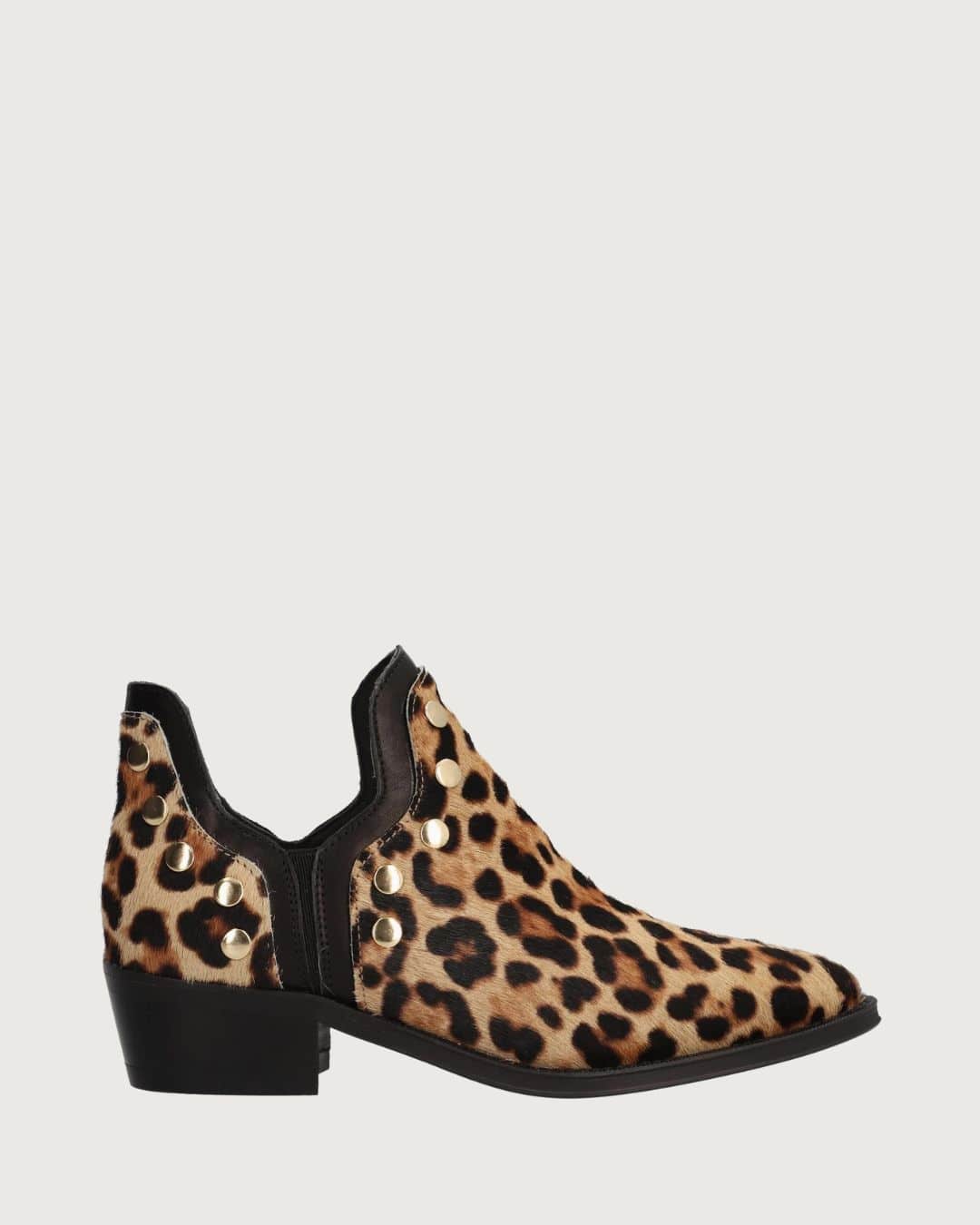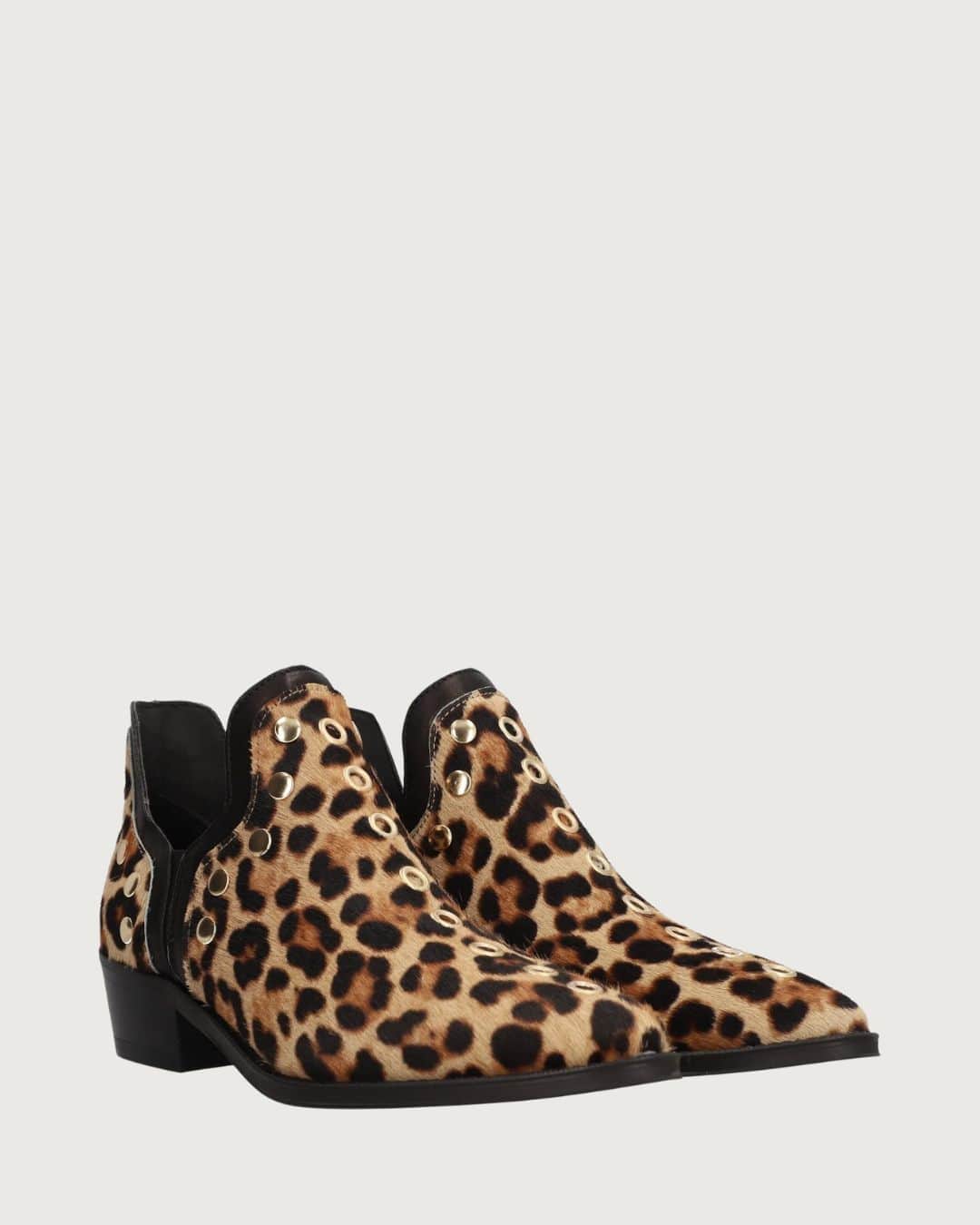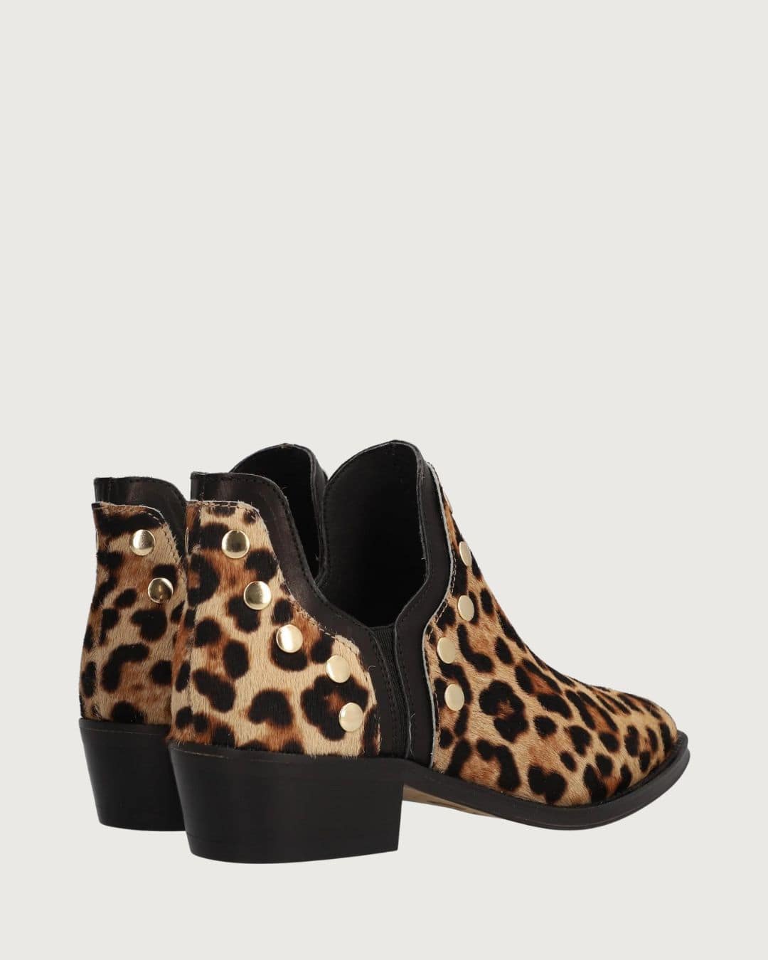 Botín fabricado en piel con suela antideslizante y puntera afilada, sin cierre y caña baja. Altura tacón: 4 cm