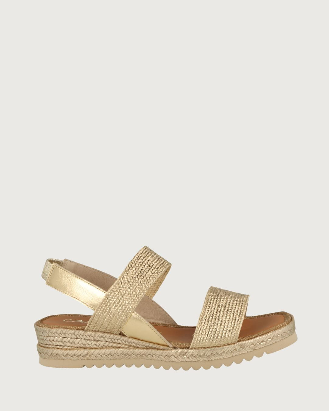 Lona para mujer de la marca Casteller fabricada en yute con parte superior de elástico metalizado para una buena sujeción. Hecho en España. Altura tacón: 4 cm