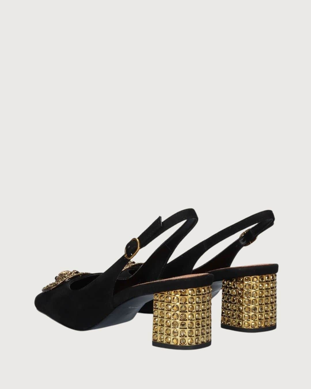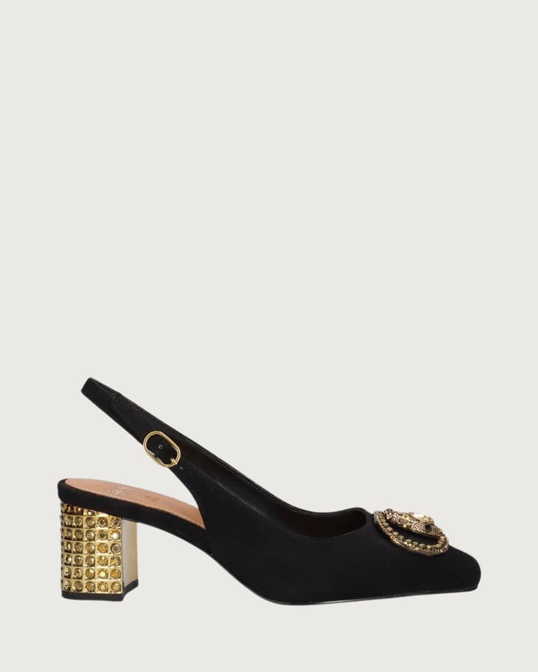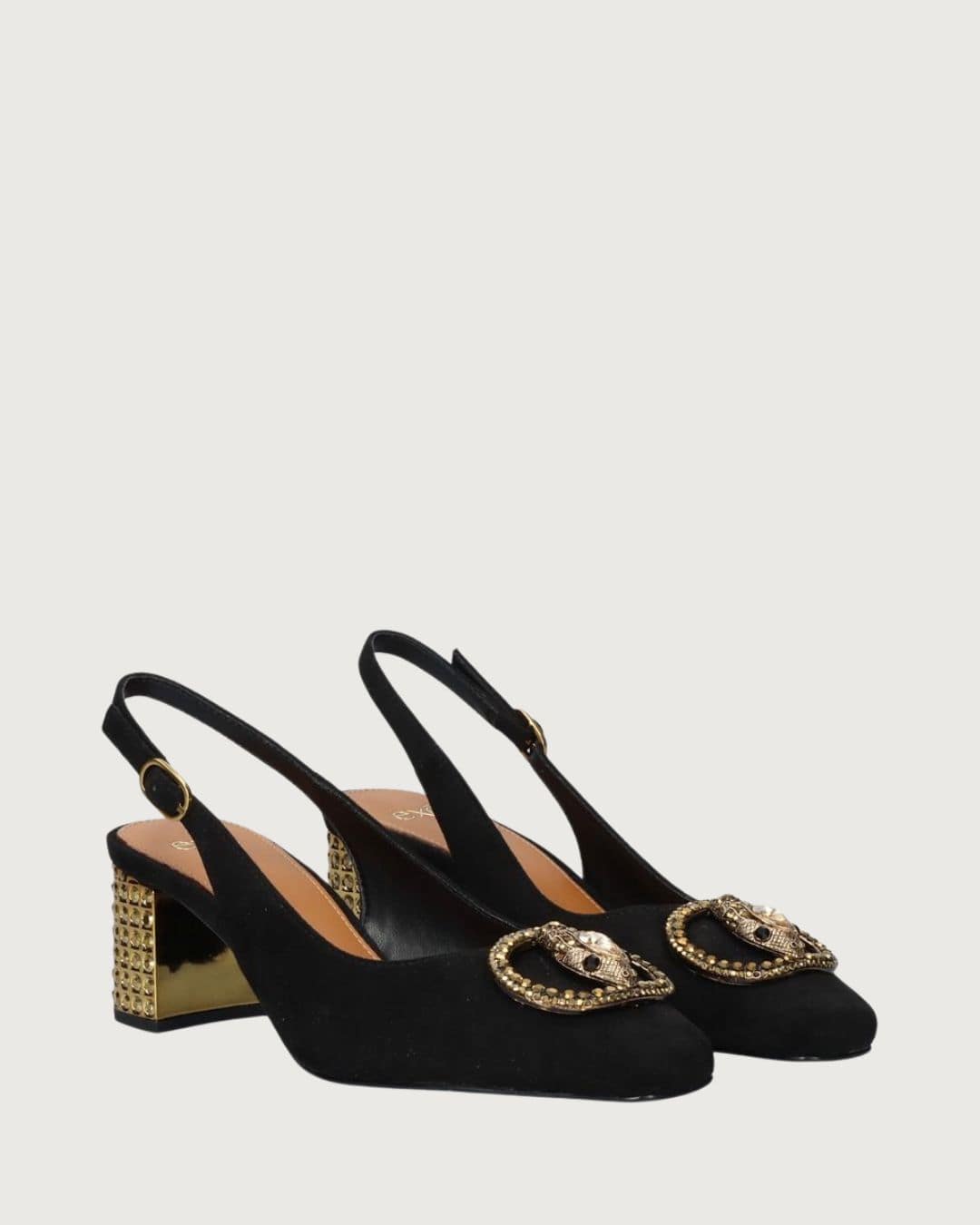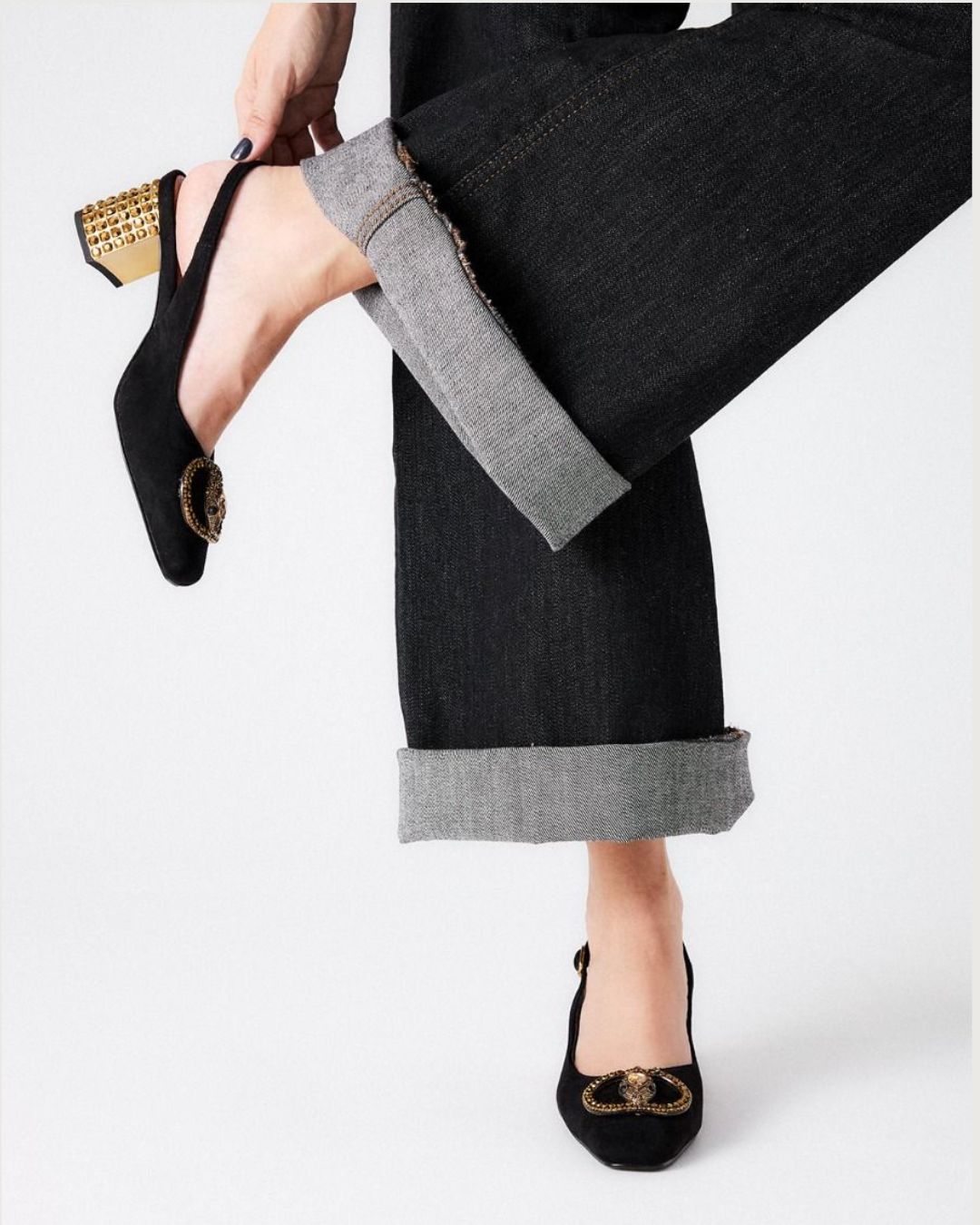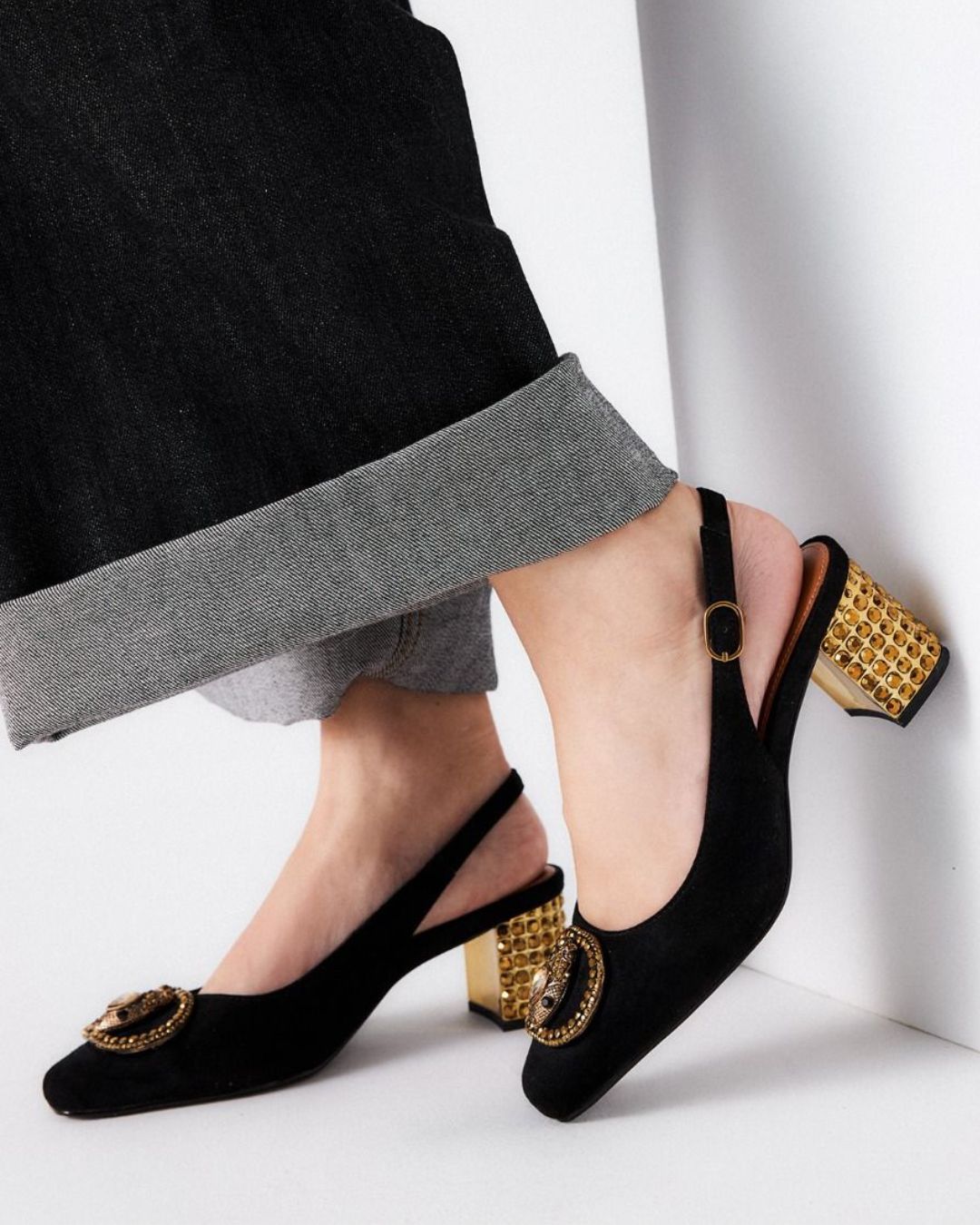 Salón destalonado fabricado en material sintético con la suela de piel. Altura tacón: 6 cm