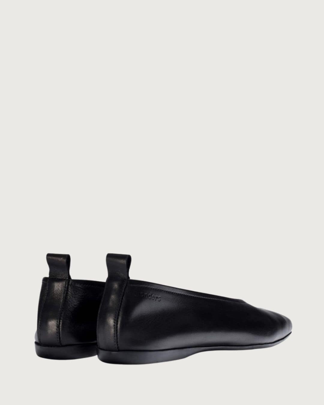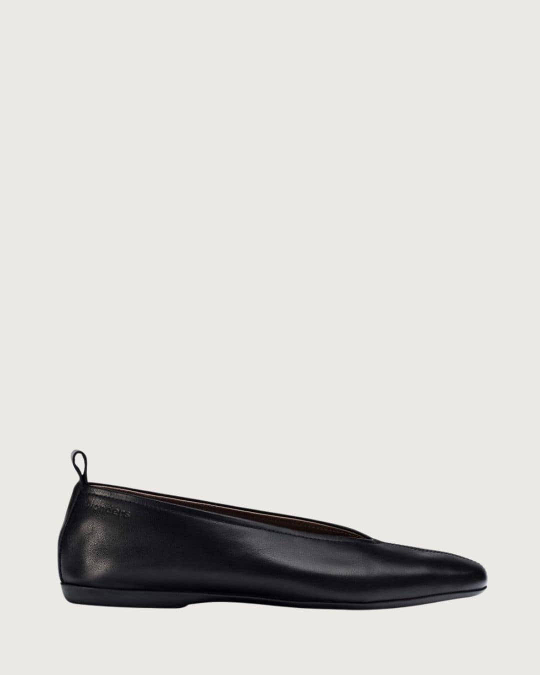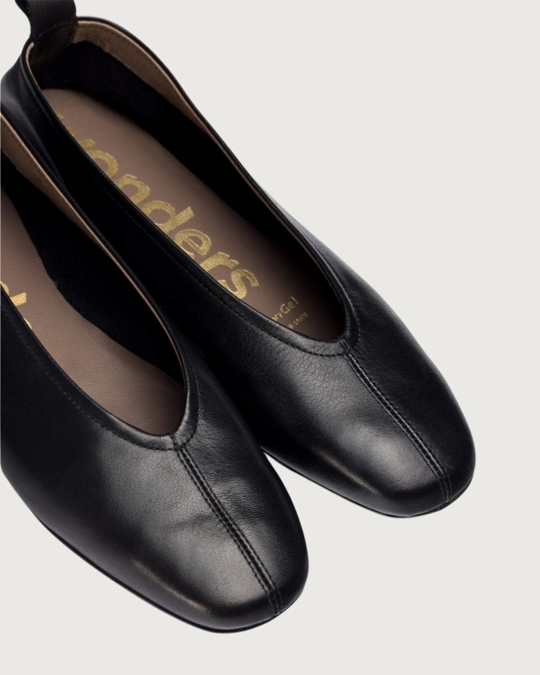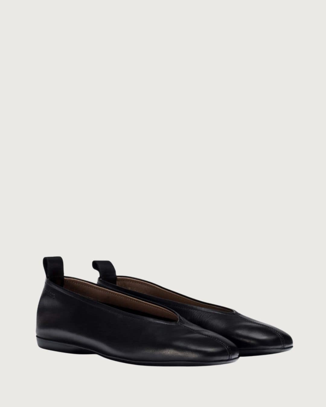 Bailarina planas Pepa de piel en color negro. Modelo atemporal de corte redondo, detalle de doble pespuntes y tirador trasero para mejor calce. 100% Hecha en España por manos artesanas.