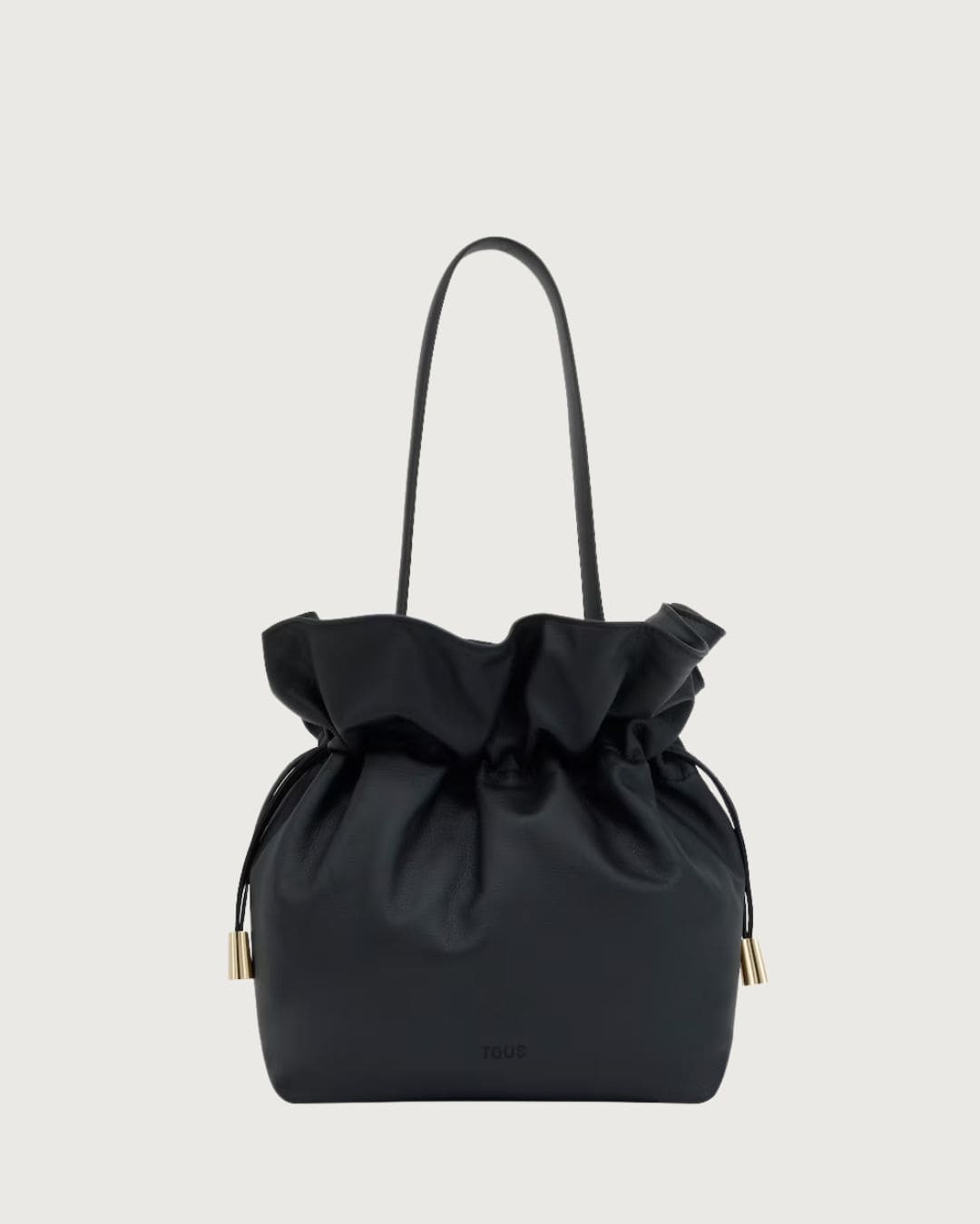 Bolso bombonera mediana Tous Heritage de piel con certificación LWG en color negro. Cierre con cordón ajustable. Asa bandolera ajustable y desmontable. Medidas: 33 x 40 x 33.