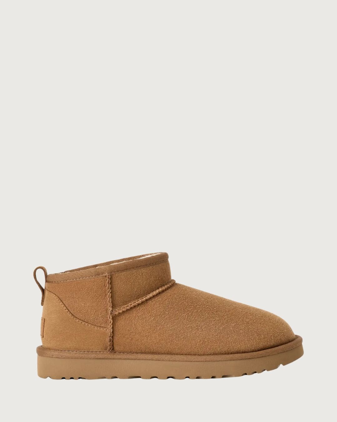 Las Classic Ultra Mini son uno de los artículos más codiciados de nuestros clásicos. Un diseño con una caña más baja que facilita ponérselas y quitárselas. Las Classic, pretratadas para que se mantengan en buen estado durante más tiempo, conservan todo lo que te gusta del modelo original, como la emblemática piel de oveja UGG y una suela ultraligera, así como flexible. Este producto se fabrica en una fábrica que apoya a las mujeres de nuestra cadena de suministro con la ayuda del proyecto HERpro