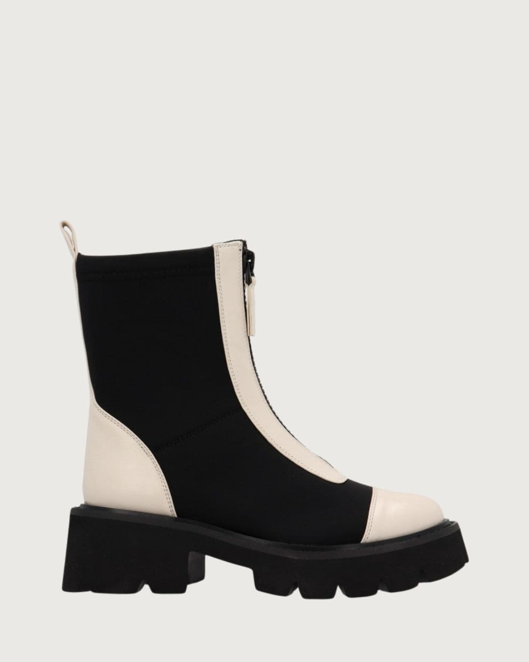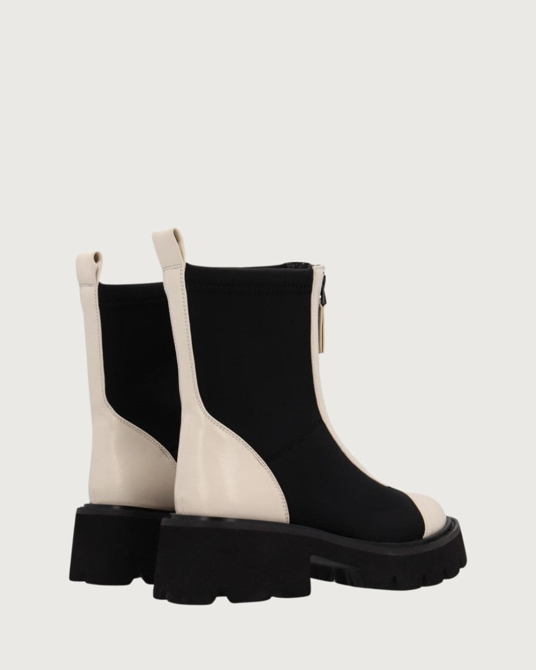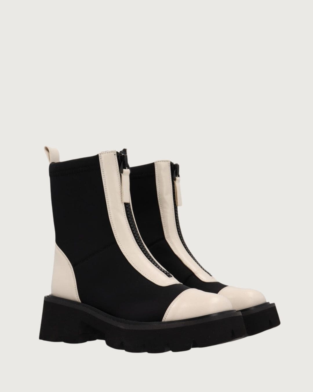 Botín de punta redondeada con cremallera central fabricado con materiales sintéticos. Un modelo cómodo pensado para el día a día. Altura tacón: 4,7 cm