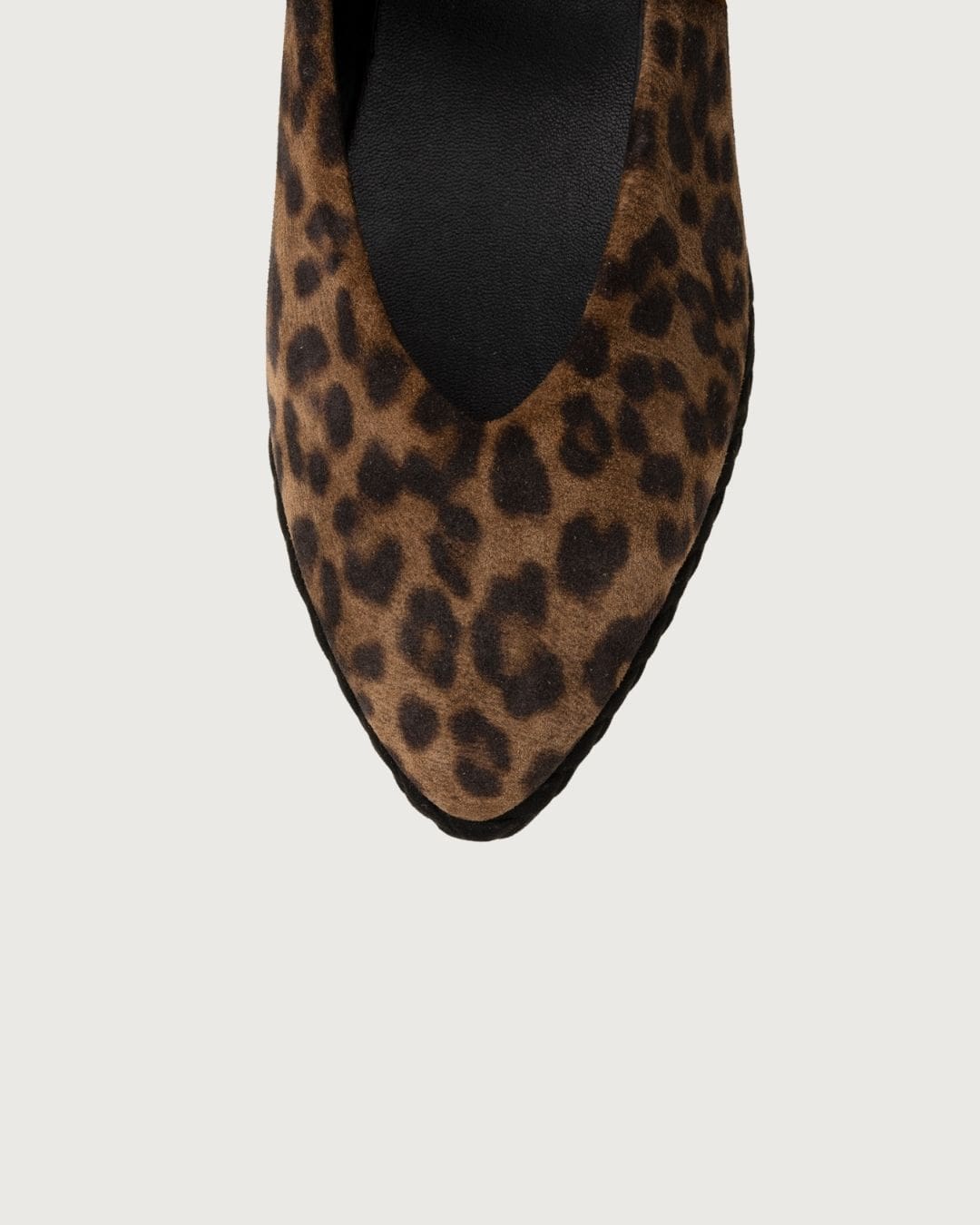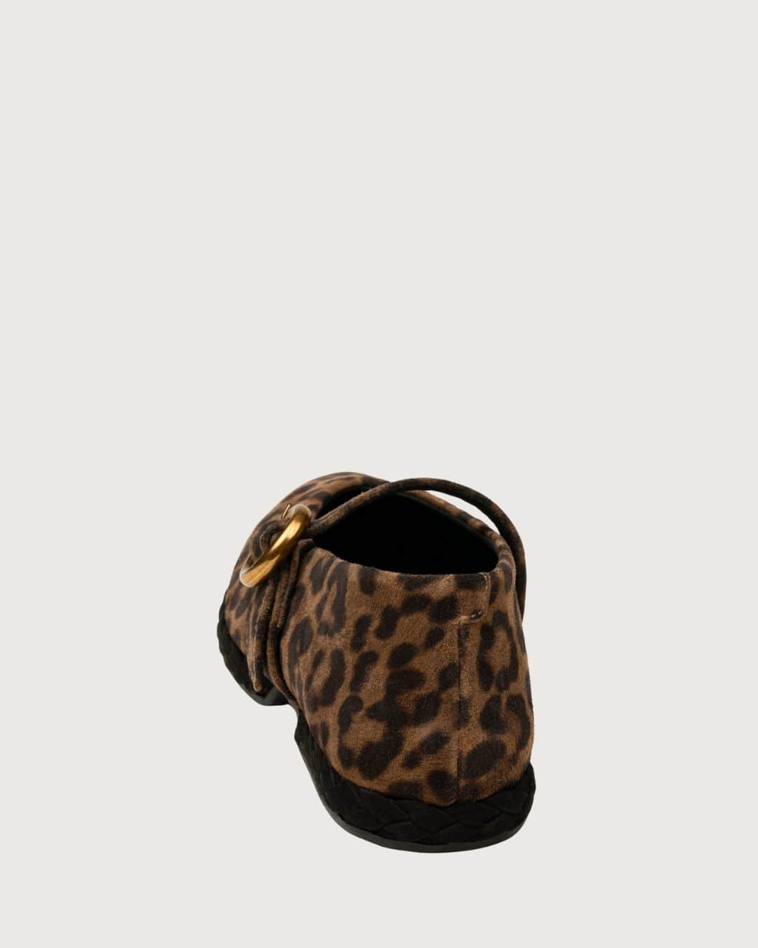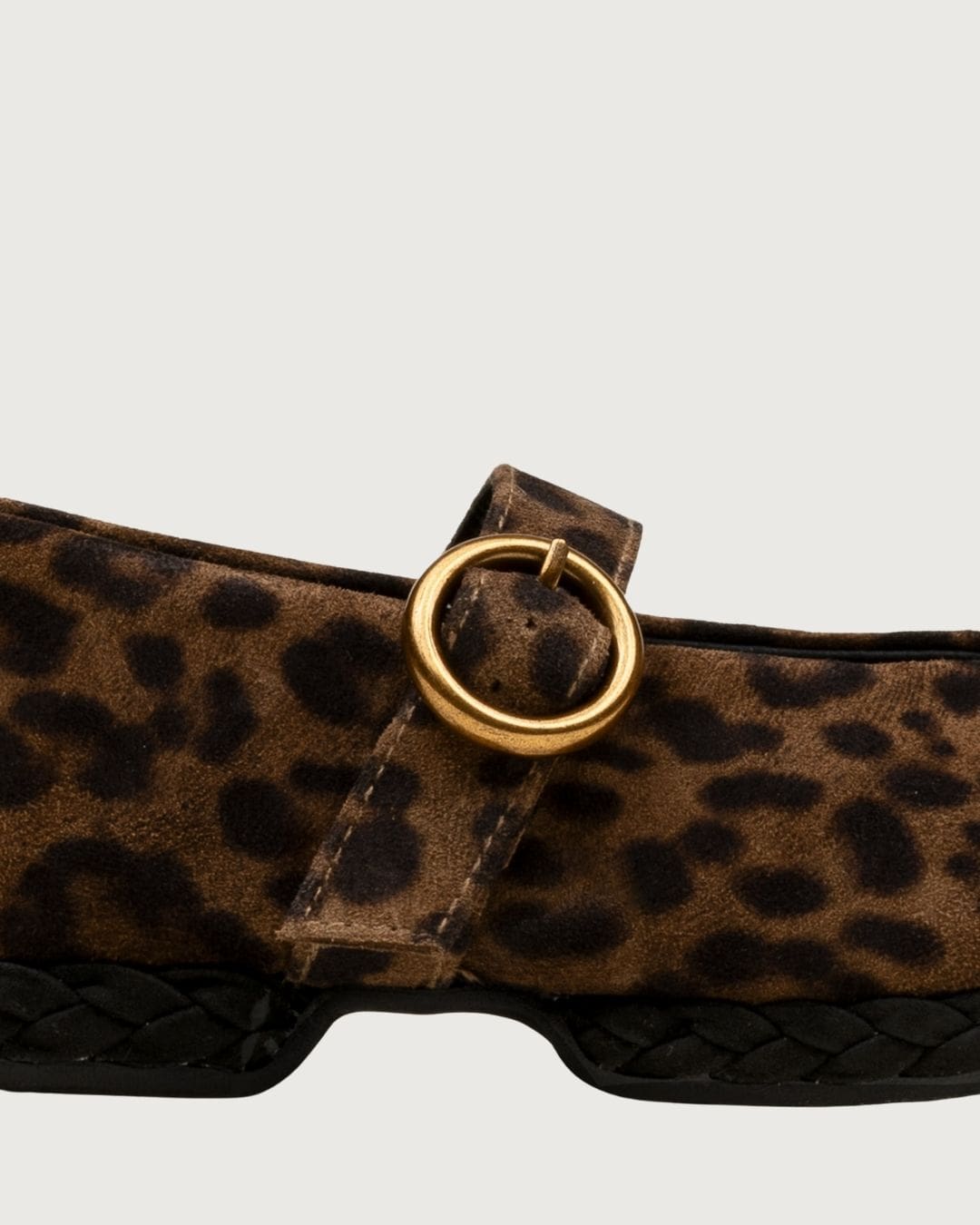 El modelo Hana de Gaimo reinventa la clásica bailarina Mary Jane con un diseño femenino y atemporal en piel de ante con estampado leopardo. Cuenta con tira ancha y hebilla metálica redonda, forro y plantilla transpirable, y piso con banda trenzada de piel que aporta un toque artesanal y distintivo. Hechas a mano en España, estas bailarinas combinan diseño impecable y comodidad, adaptándose con elegancia a looks diarios y ocasiones especiales.