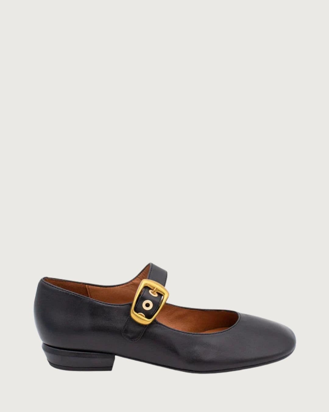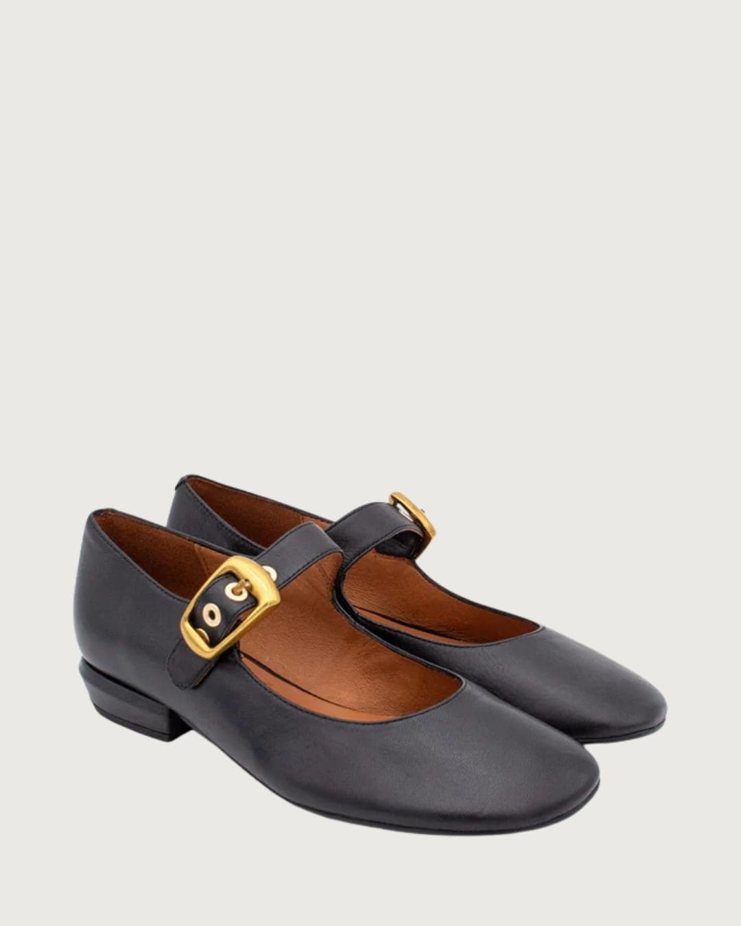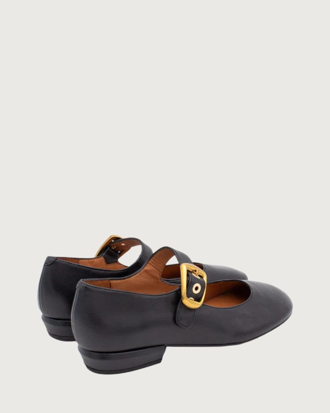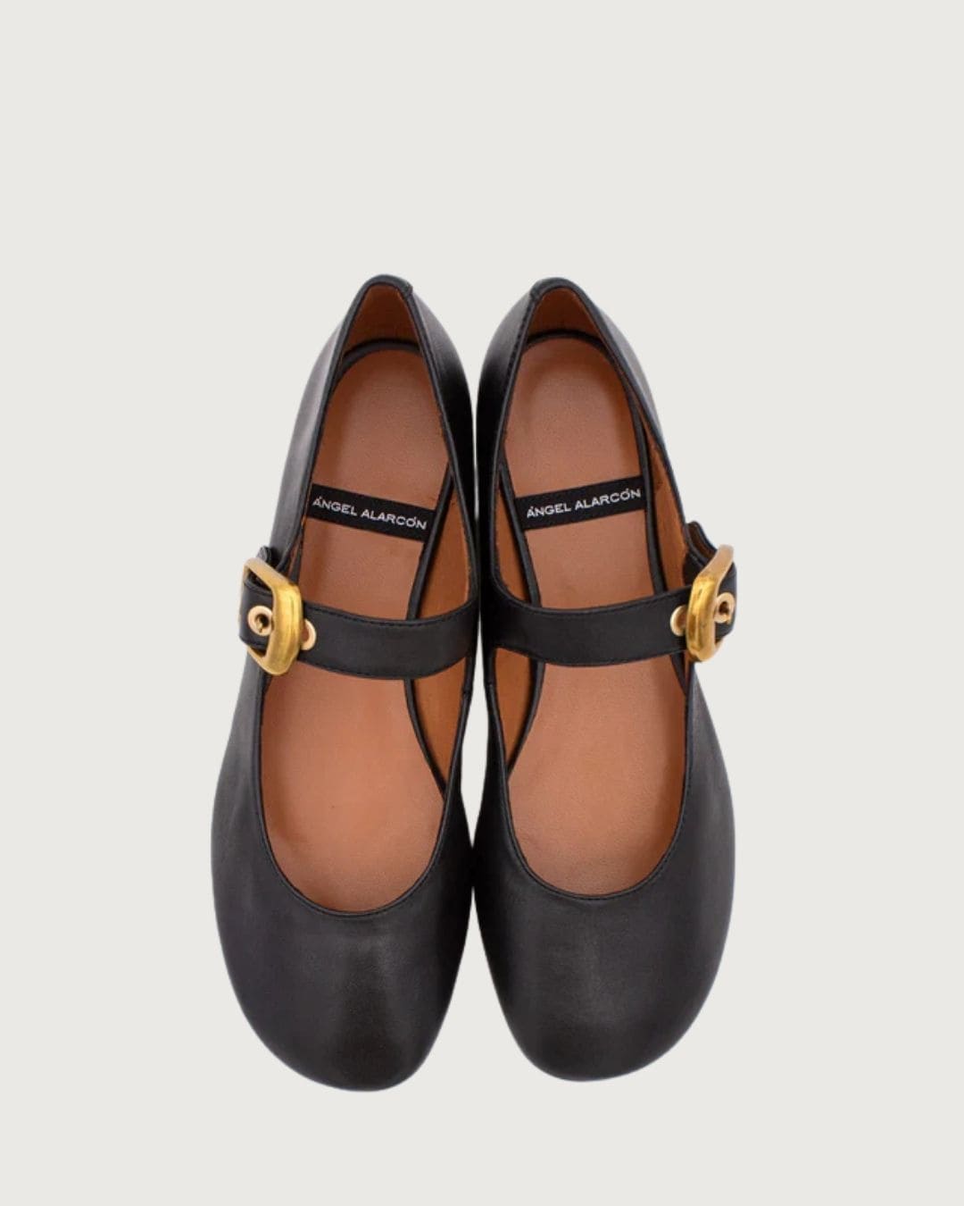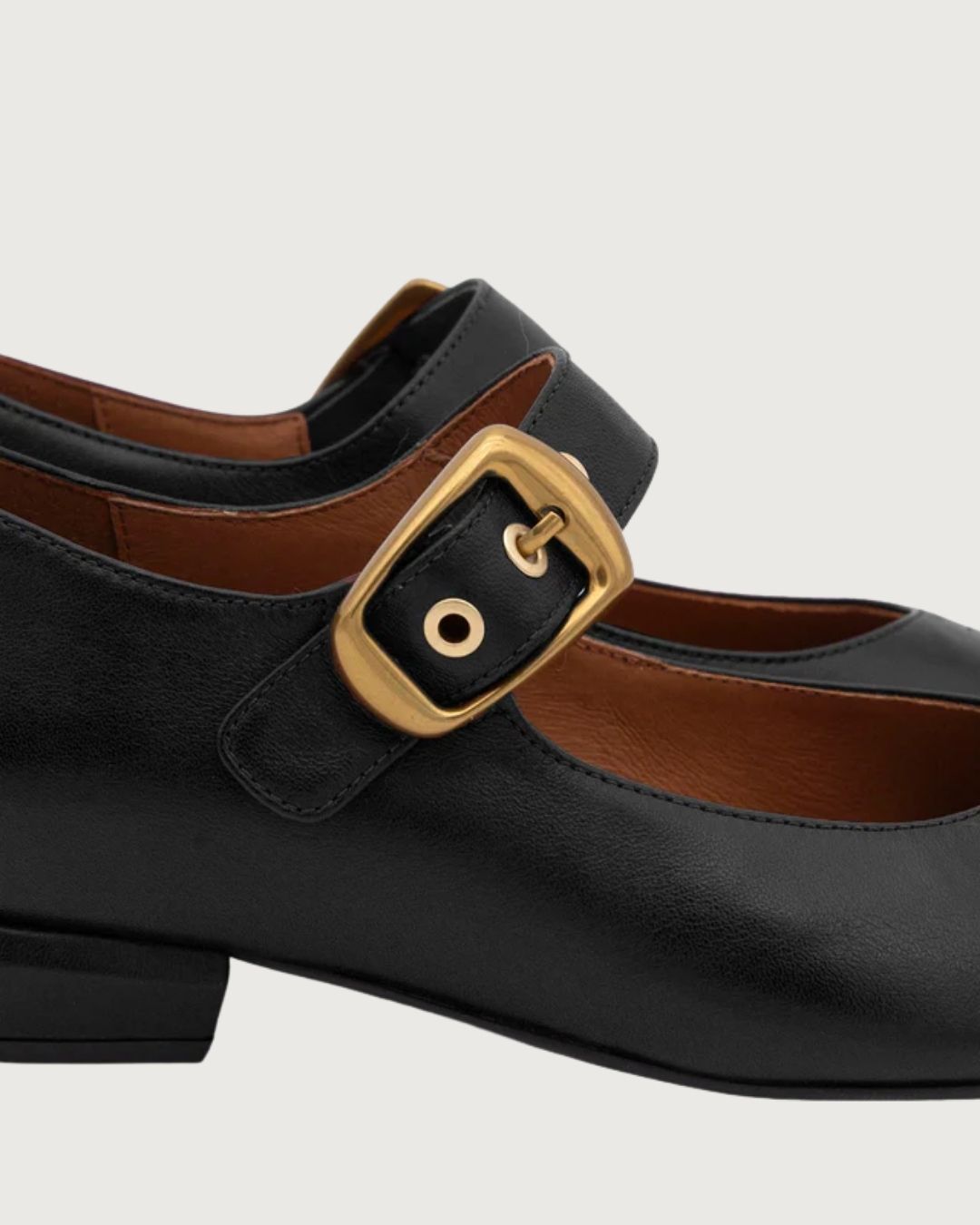 Merceditas de mujer de tacón plano con puntera redonda de Piel