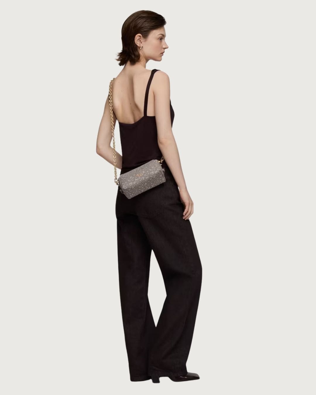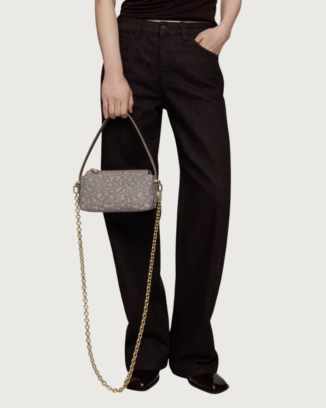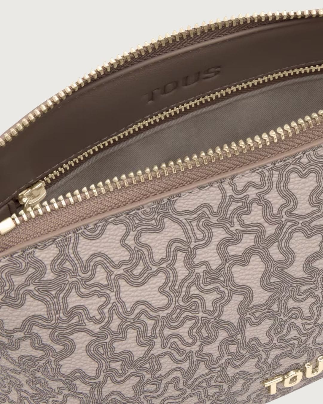 Minibolso Kaos Mini Lines de lona con detalles de poliuretano en color topo. Cierre de cremallera. Asa de hombro ajustable y asa bandolera desmontable. Medidas: 11,5 x 21 x 9 cm.