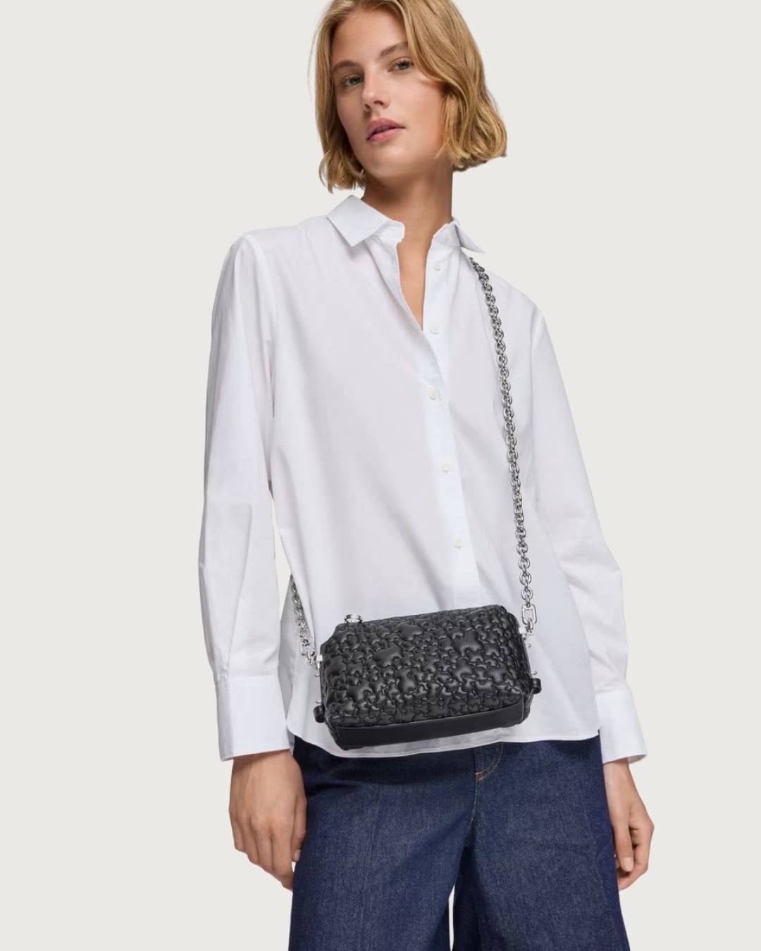 Bolso mini TOUS Puffy Bear de poliuretano en color negro. Cierre de cremallera. Asa de hombro ajustable y asa bandolera extraíble. Medidas: 12 x 20 x 10 cm.