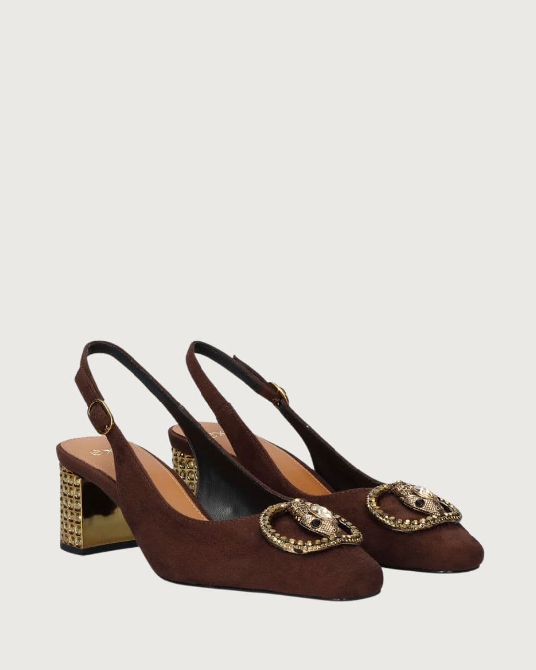 Salón destalonado fabricado en material sintético con la suela de piel. Altura tacón: 6 cm