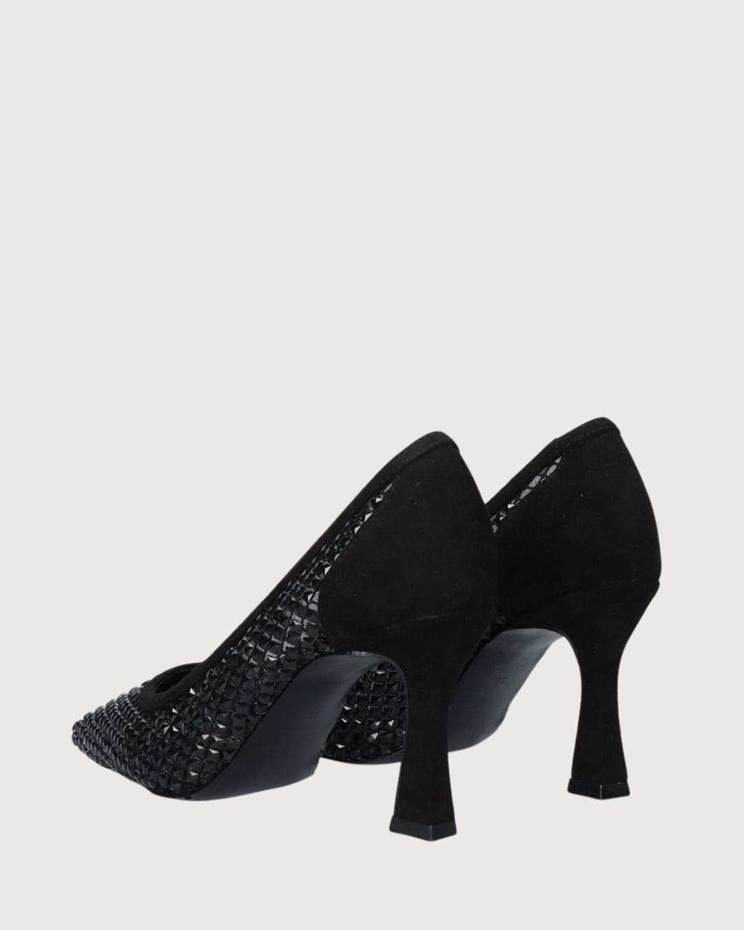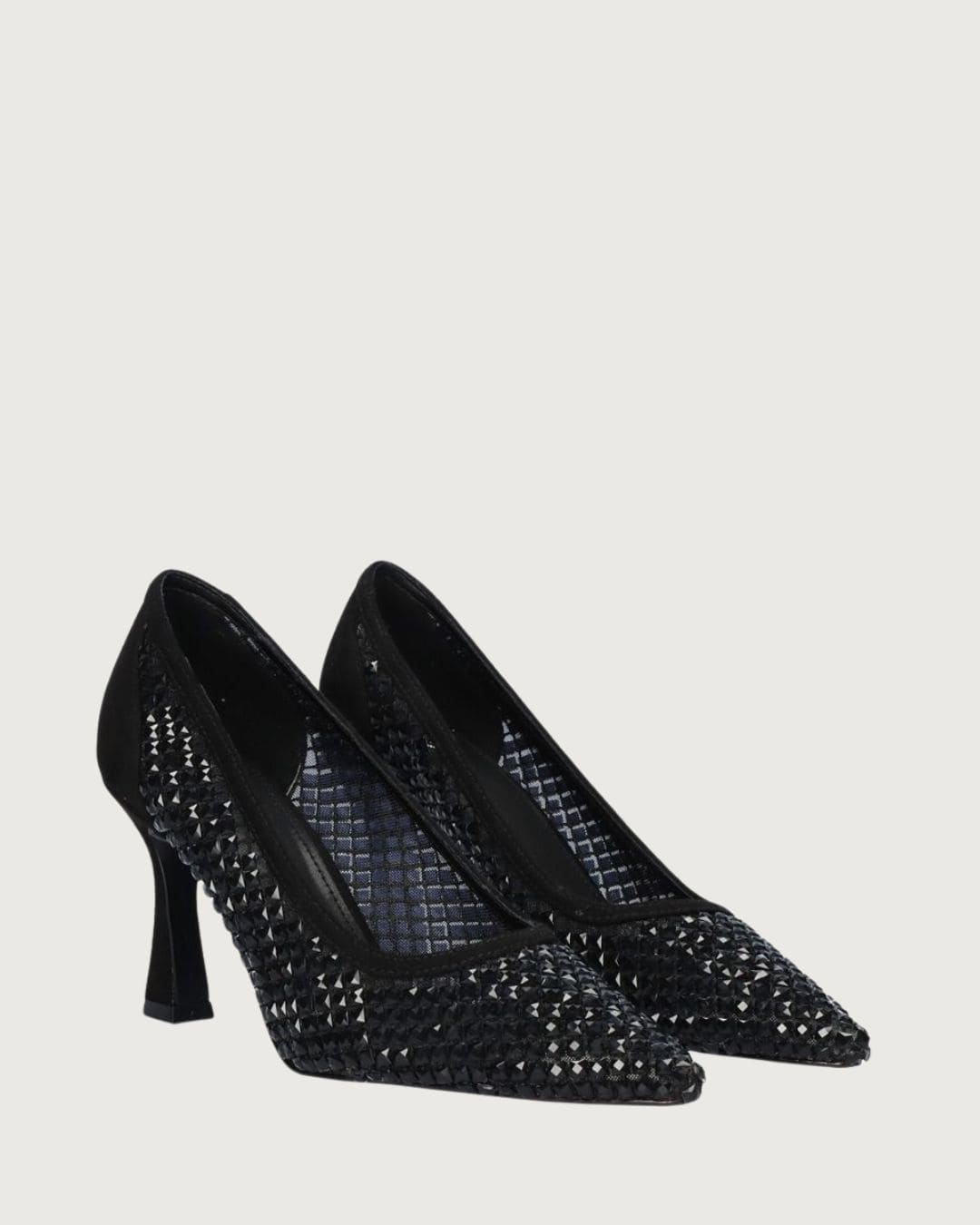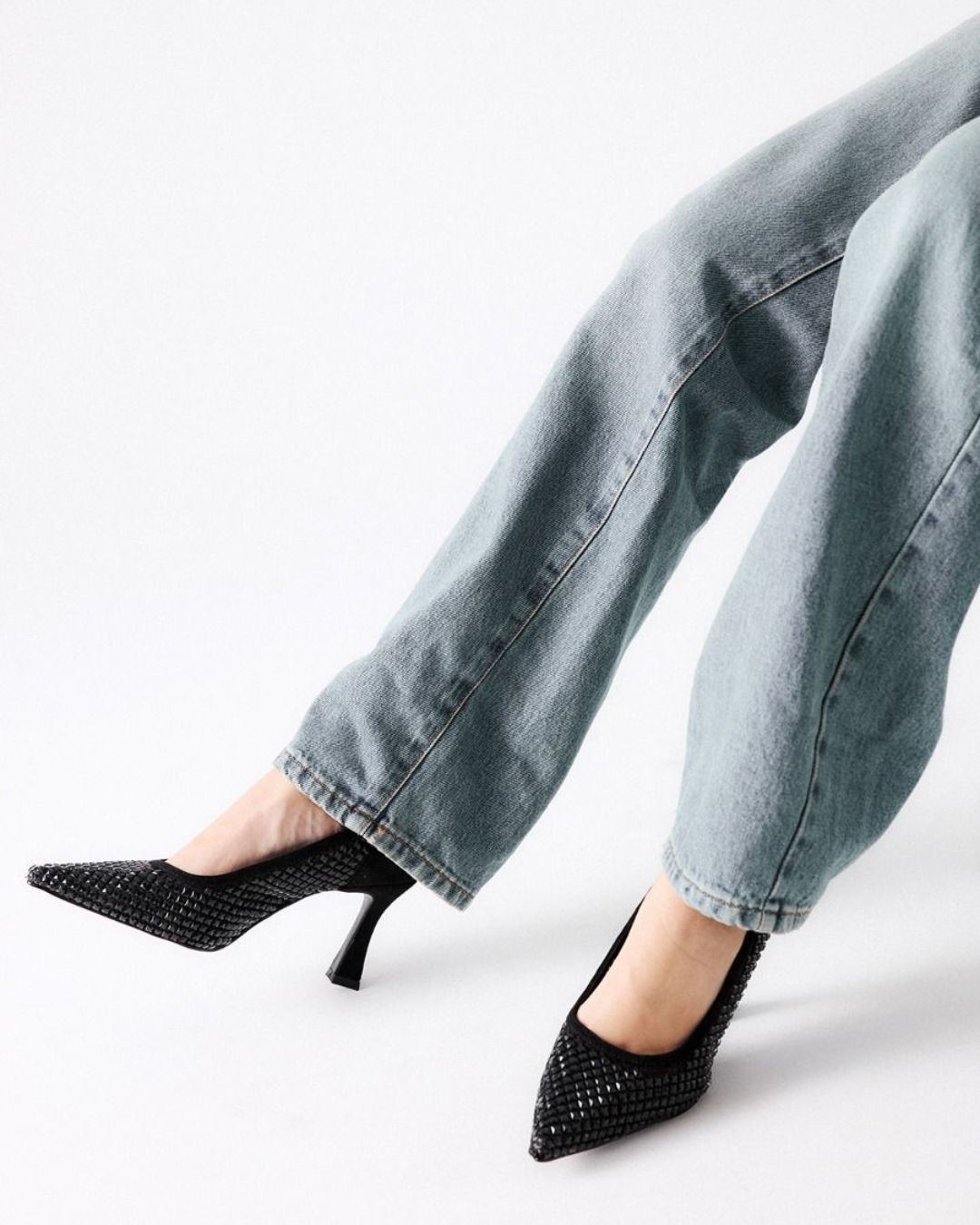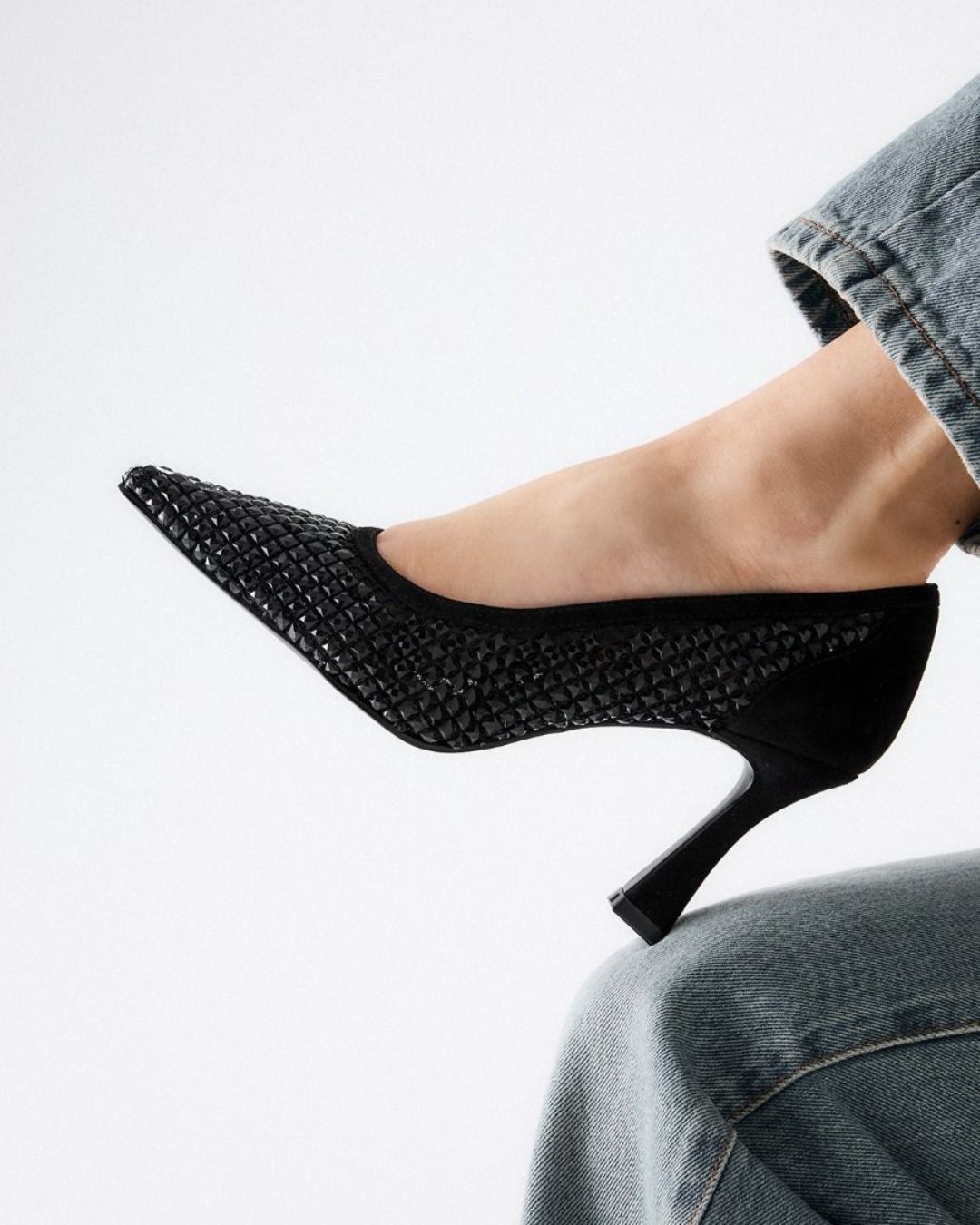 Luce sofisticada y deslumbrante con estos zapatos de vestir negros con brillantes negros, el equilibrio perfecto entre puro glamour y estilo moderno. Su diseño en negro integral con acabado brillante aporta textura, luz y una elegancia notable que transforma cualquier outfit en toda una declaración de estilo. Altura tacón: 8,5 cm